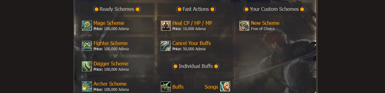- Доступны готовые схемы, реген хп, мп, цп, кенцел